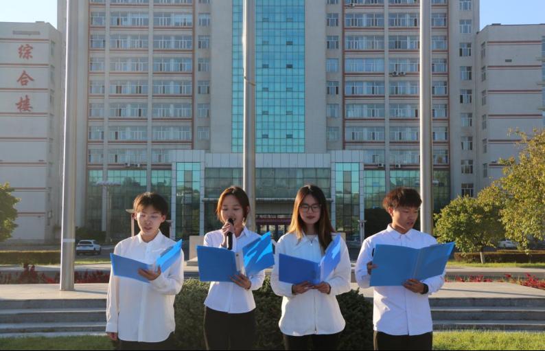 升旗仪式第三项,由我院四位同学带来了主题朗诵。全体学生深刻感受到国防,是国家的基石,是和平的守护者。它如同一道坚不可摧的长城,守护着我们安宁的生活,保护着我们繁荣的家园。