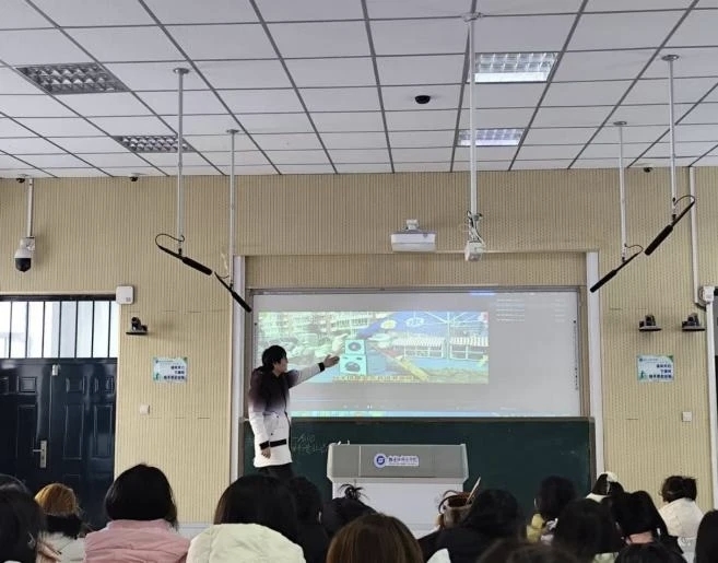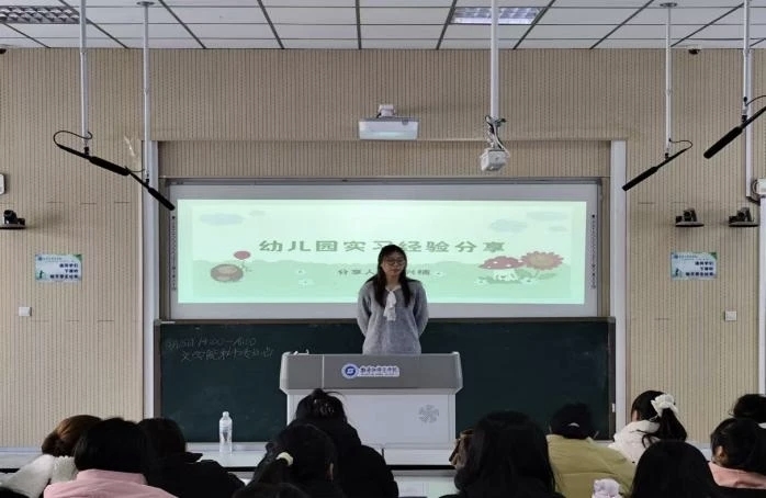 各个幼儿园的学生代表依次详尽地分享了他们在研习历程中所接触到的各类特色课程类型及个人深刻的感悟。这些分享内容聚焦幼儿园工作实际,涵盖了诸如幼儿园环境创设要点、安吉游戏个案研究、自主游戏设计与组织、有效进行幼小衔接的策略等多个热门主题。同学们通过一个个生动而具体的实际案例,通过深入细致的分析,全方位地展示了他们在研习过程中所获取的知识、引发的思考、形成的感悟以及取得的成果。