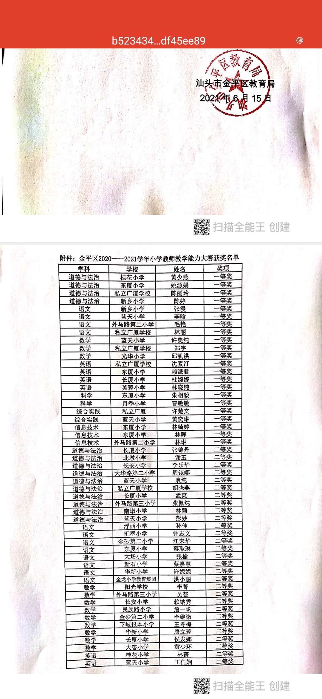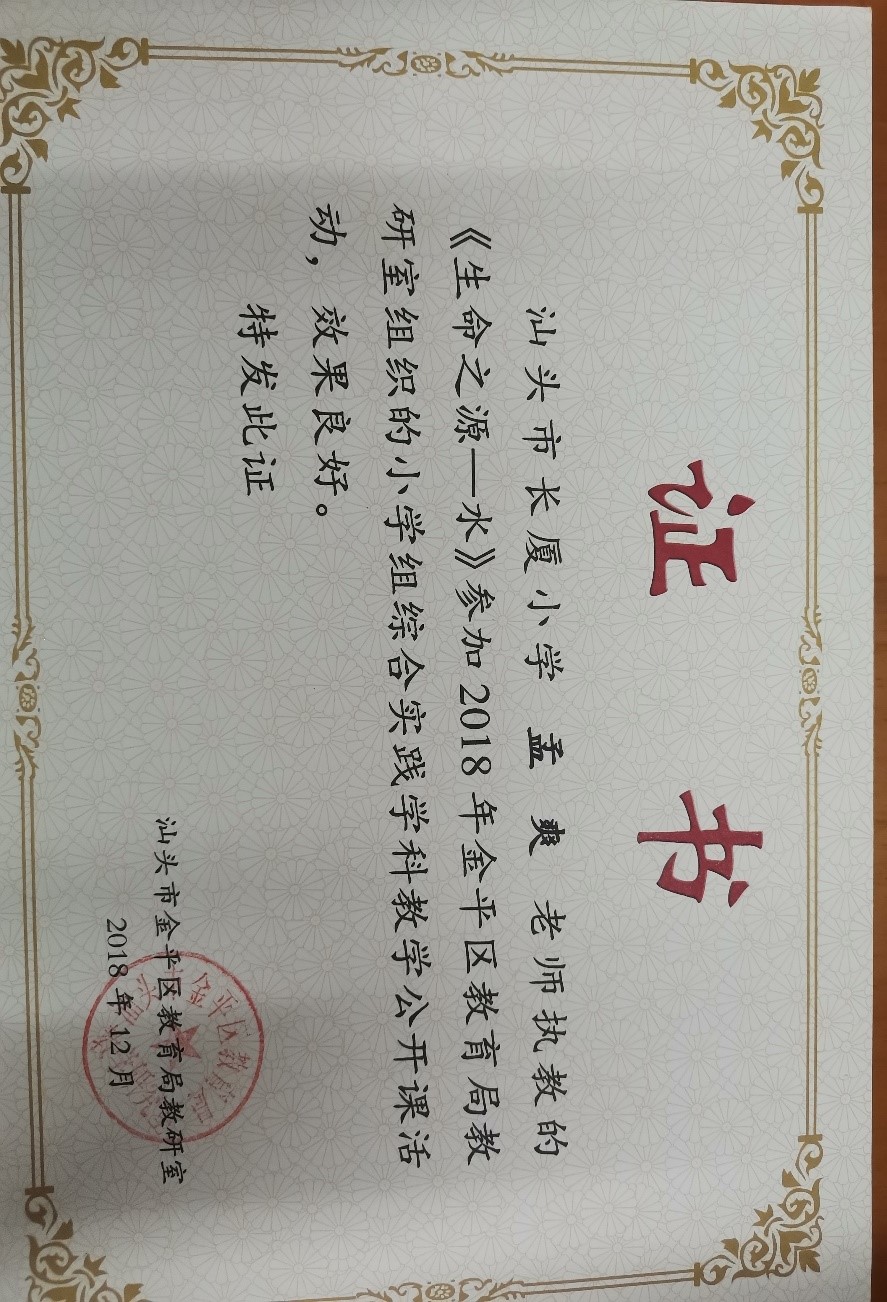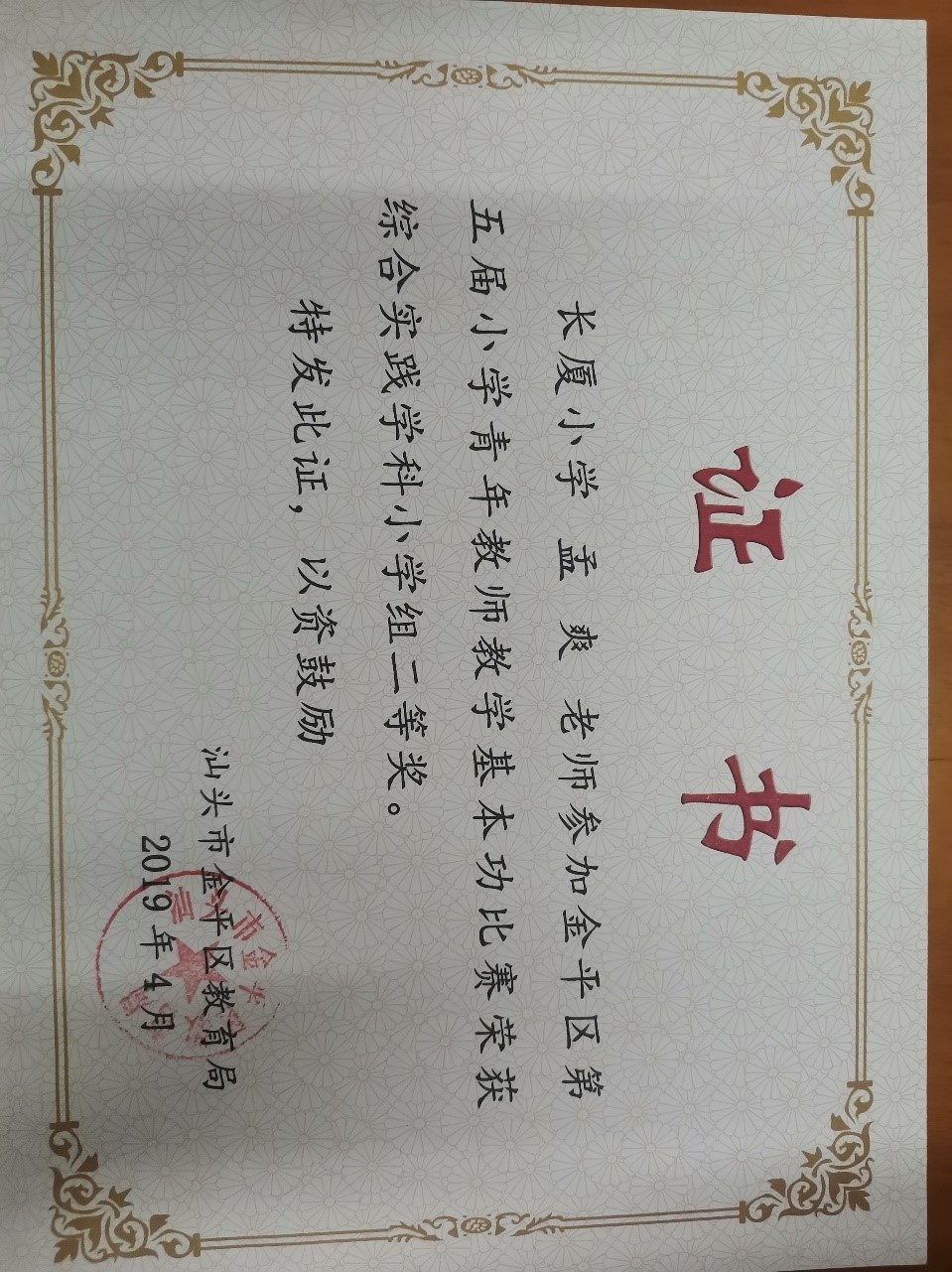 ①2019.4金平区第五届教师基本功比赛综合实践学科二等奖;