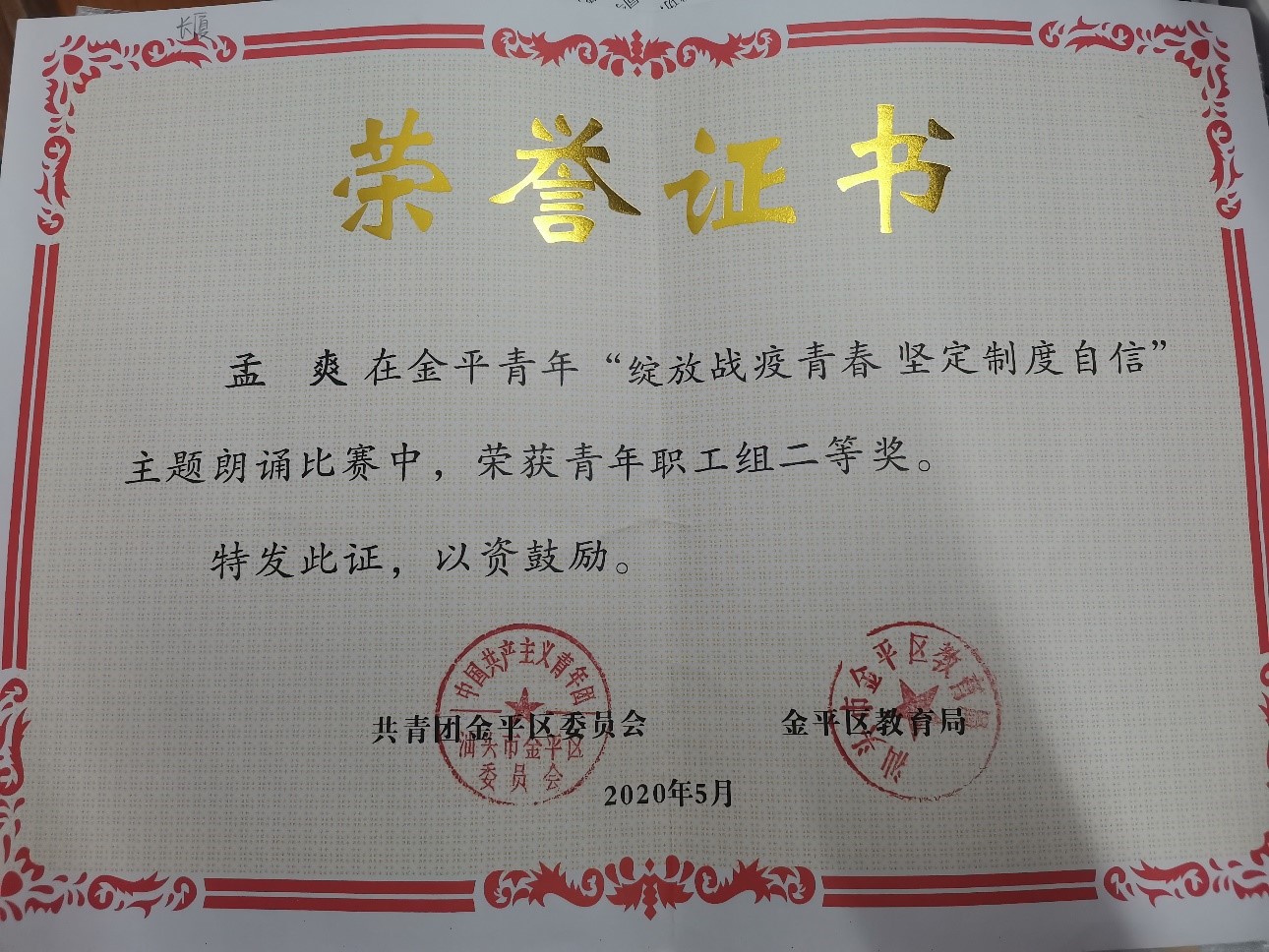 ④2021.9被评为2021年度金平区“优秀青年教师”(金平区教育局)