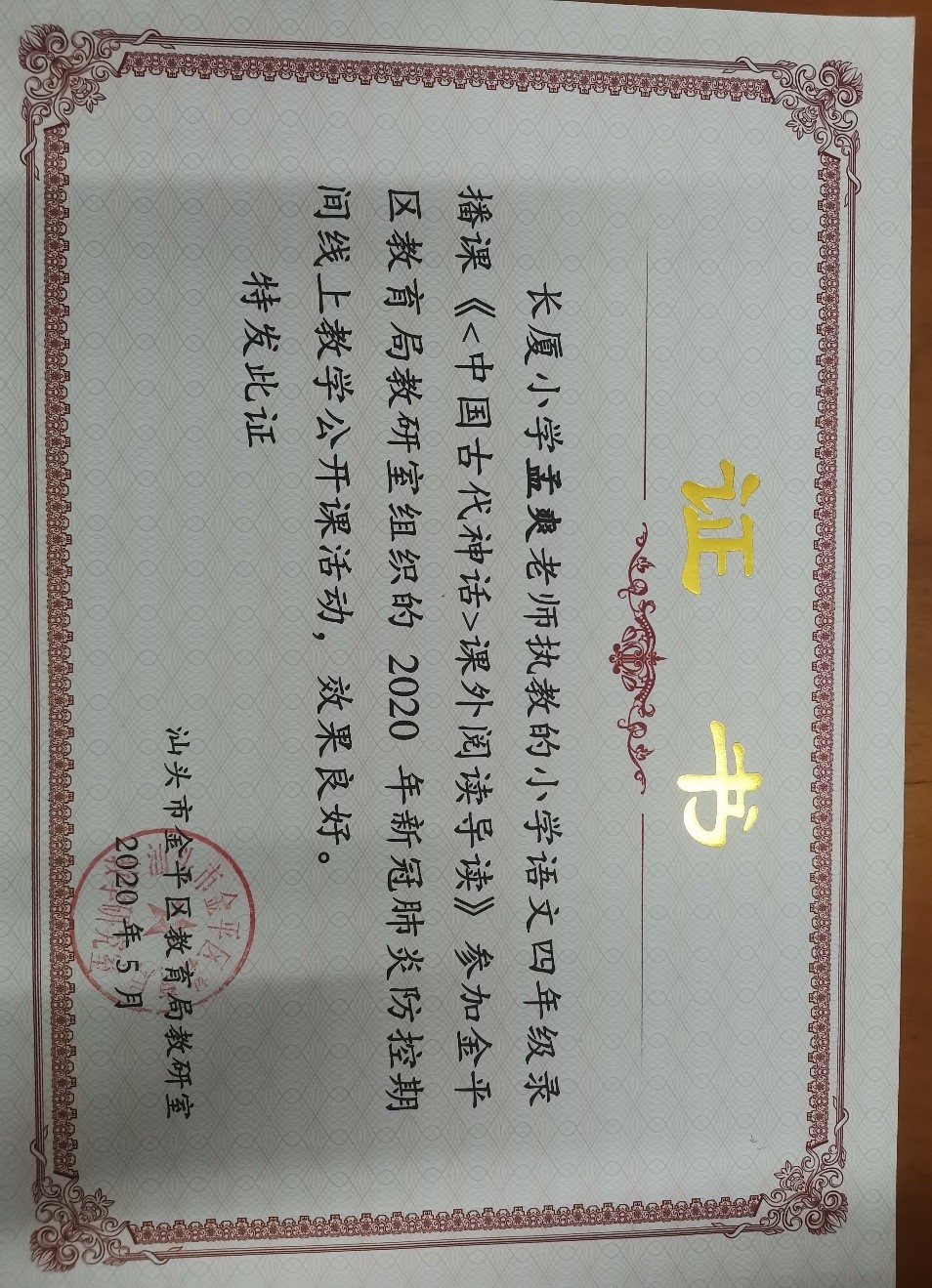 ②《小学综合实践活动教学策略探究》在金平区2019年小学优秀教学论文评比活动中,荣获一等奖;
