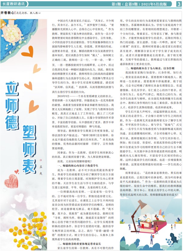 ⑤《立师德塑师表》长厦教研通讯刊物;