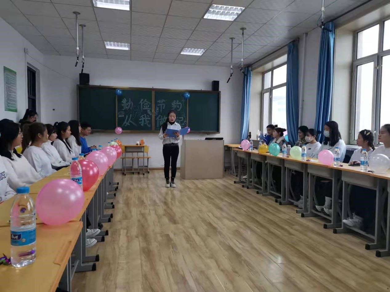 在团日活动起初,由主持人李田田同学介绍1903班团员情况。接下来活动第一项,由安笑辉同学为大家讲述从10月31日世界勤俭日的确立,再到如今习近平总书记一直提倡厉行节约,反对浪费的社会风尚,并多次强调要保持艰苦奋斗,勤俭节约的作风。
