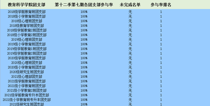 教育科学学院【青年大学习】网上主题团课第十二季第七期参与情况排行榜