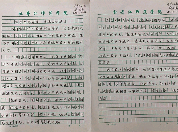 2021级小学教育二班王美多同学和梁玉英同学观点鲜明,语言准确,文笔流畅,作品如下: