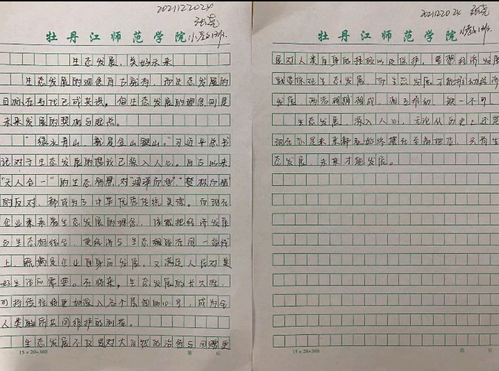 “生态发展”既是社会热点,也是企业发展的新追求、新理念、新思路,更是未来经济发展的新契机、新起点、新高度。自古,中国就讲求“生态发展”,追求“天人合一”的境界,极其反对“涸泽而渔”“焚林而猎”等破坏自然环境的行为。强调社会发展要与自然环境承受能力相适应。现如今,企业发展更要满足人民对美好生活的需求,践行绿水青山就是金山银山的理念,经济发展不能站在自然环境的对立面。长远来看,生态发展应满足可持续发展、绿色发展的理念,符合人类发展的趋势。特此,教育科学学院团总支组织部开展了以对“生态发展 未来之路”为主题的的每周一论的活动。下面让我们欣赏本周的优秀论文。