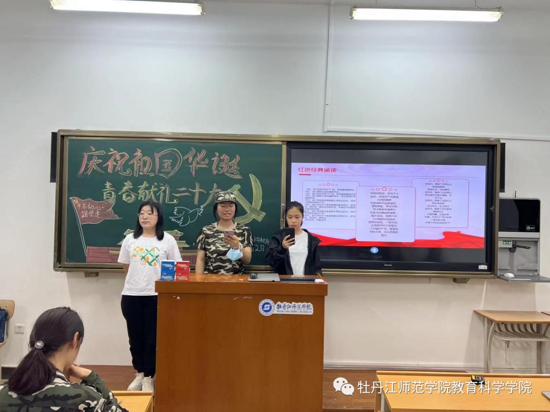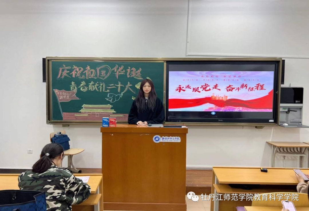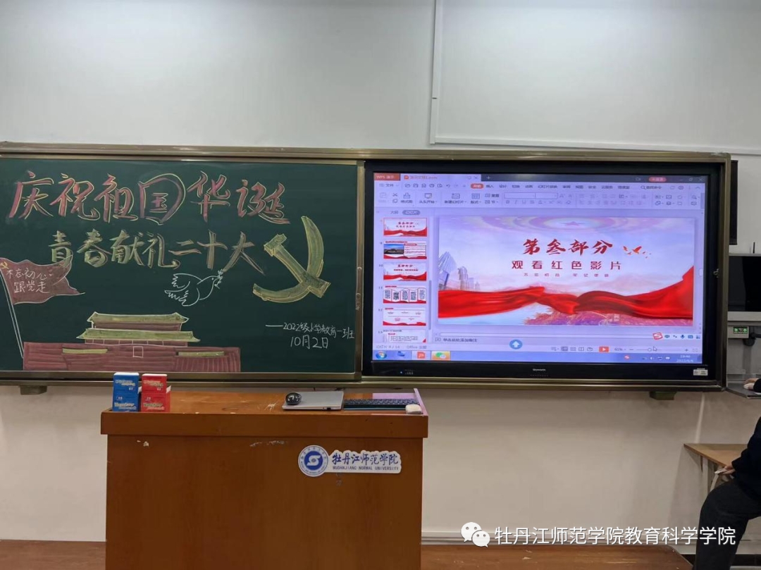 为迎接和学习宣传贯彻党的二十大、庆祝祖国华诞,强化广大青年团员的政治品格,引导广大青年团员在奉献中体现作为,在付出中提升境界,在实践中传播文明。教育科学学院2022级小学教育1班于10月1日18:30在外语楼605开展以“青春献礼二十大,砥砺奋进守初心”为主题的团日活动,敬历史长河浩荡,愿祖国繁荣昌盛。