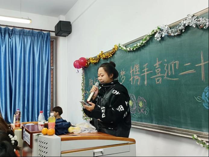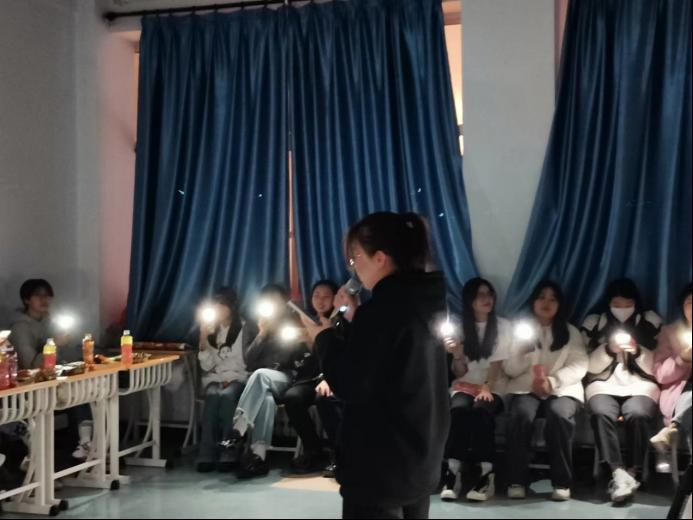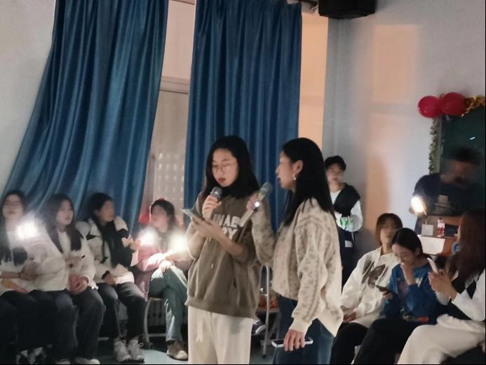 同学们的节目表演结束后,各位学长学姐也在热烈气氛的烘托下摩拳擦掌,纷纷上台表演节目,大家充分投入进活动之中,辅导员朱佳慧老师也在热烈的气氛中演唱了一曲《看得最远的地方》,优美的旋律让气氛更加热烈。