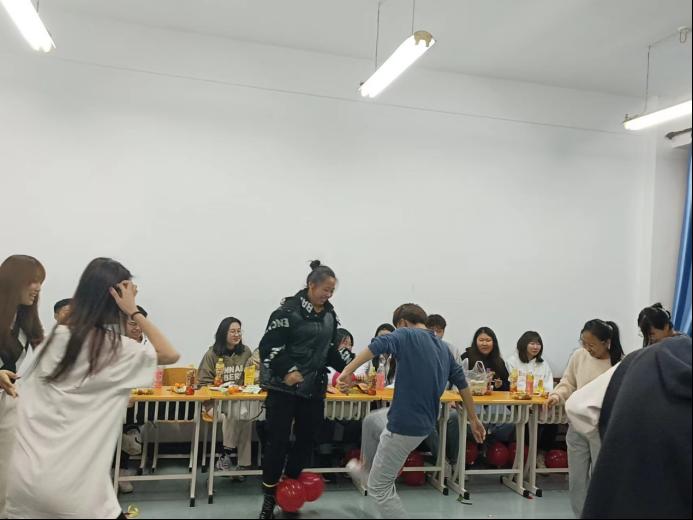 丰富的节目让同学们意犹未尽,随后两位主持人组织大家进行了“踩气球”“一块五毛”等欢快的游戏,激发了同学们的积极性,让每一位同学都融入此次活动,增强了同学们之间友好互助的关系。