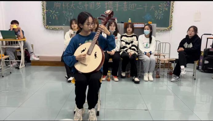 激动人心的朗诵结束后,班级同学积极上台表演才艺,展示自身风采。节目形式丰富,不仅有优美的歌曲献唱,还有体现中华文化的中阮艺术,使同学们充分展示了自身的风采,并调动了同学们的热情,班级内的气氛愉快而又热烈。