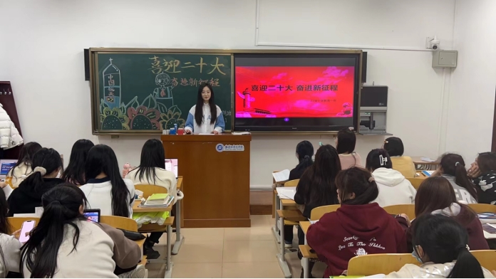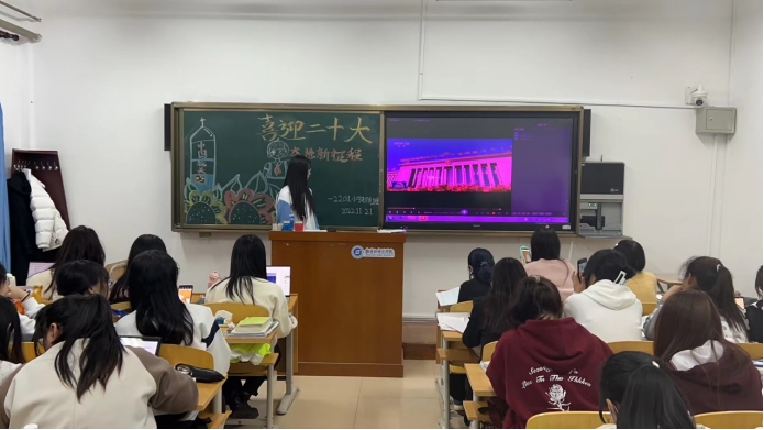 为了引导广大学生进一步坚定理想信念,把思想和行动统一到这次大会精神上来,自觉将“小我”成长融入“大我”奋斗,将人生选择与中华民族伟大复兴中国梦结合起来。2022级小学教育一班全体同学于2022年11月21日19:00在外语楼605开展了“喜迎二十大 奋进新征程”主题班会。