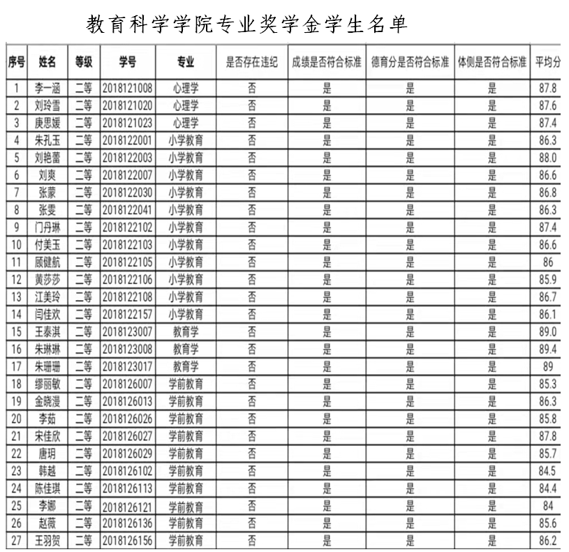 关于教育科学学院2021-2022学年专业奖学金评定名单的公示