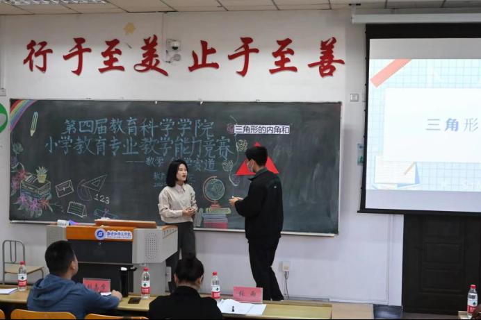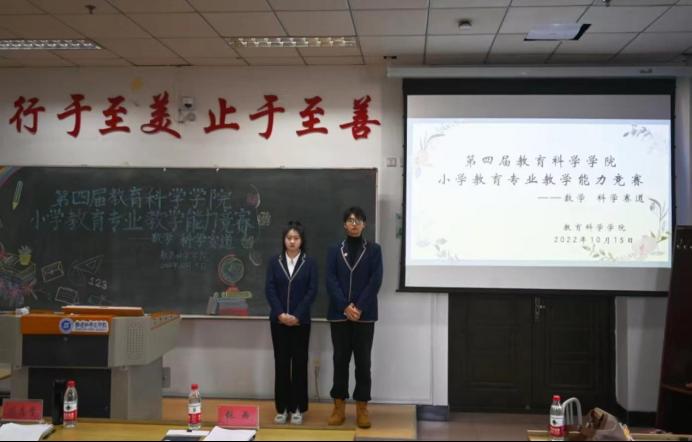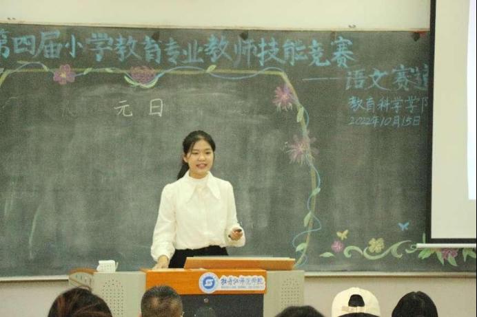 为了提高小学教育专业学生的教学水平和专业素养,促进学生专业成长,为学生搭建一个锻炼自己、展示风采的平台,教育科学学院小学教育专业于2022年10月15日上午8:00举办第四届小学教育专业教师技能竞赛。比赛分为三个会场同时进行,教育科学学院副院长田春艳教授,小学教育系主任姚雯雯老师,肖占君老师;副院长李树平教授,甄莹老师,张东亮老师;张雨老师,赵立新老师,刘志学老师分别作为评委出席了三个会场。