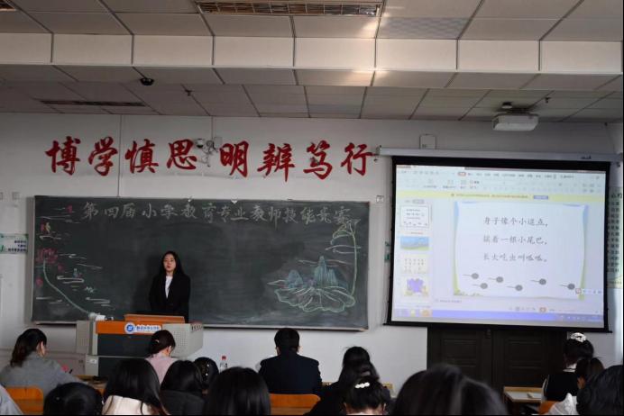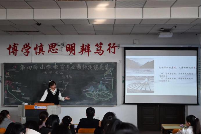 各个分会场,学科参赛选手同台竞技,以扎实的基础、自信的风采,充分展示了我院小学教育专业学生的专业素养和教学风采。本次比赛分三个环节,教学思路阐述、片段教学、交流互动,从教师口语、教态、授课内容、板书设计、重难点把握、教学方法、多媒体使用、板书设计等多方面对选手进行综合考核。参赛选手声情并茂的展示、辅以贴切的课件、配以动听的背景音乐,将在场的教师与同学们带入了一幅幅不同画面的情境中。这一次的竞赛,不仅浸润了学生们的心灵,更在演讲中展示了扎实的教学基本功,赢得了在场教师与学生阵阵掌声。