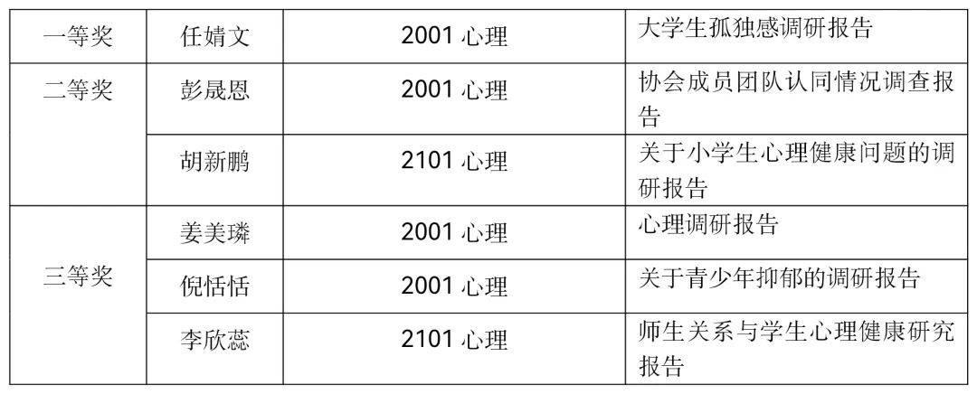 参赛人员:经层层选拔,从心理系择优选取十份成果性调研报告。