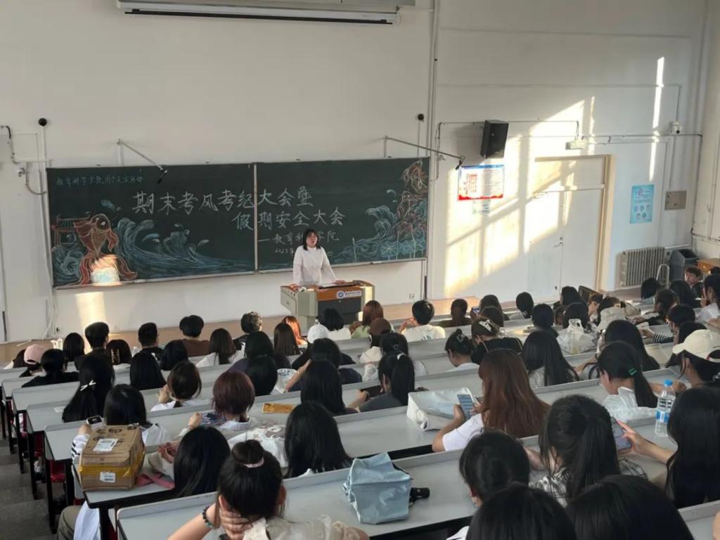 为严肃考风考纪,弘扬优良学风,做好学生假期安全教育,6月14日下午五点,我院以线下开会的方式举行“考风考纪暨假期安全大会”,本次大会由辅导员朱佳慧老师主持召开,2022级全体同学、2020及2021级班长团支书及研究生主要学生干部参会。