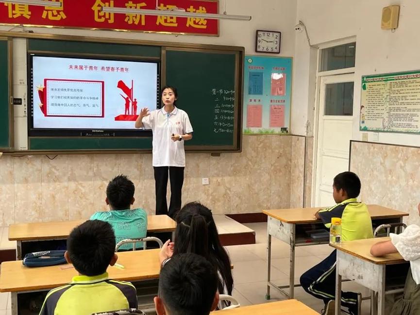 为教育引导广大受援学生铭记革命历史,传承红色基因,弘扬红色精神。支教以来,我院“三下乡”志愿服务团队开展以“聚焦乡村教育高速发展 引领当代青年领悟党恩”为主题的红色教育“五个一”活动,唱好一首红色歌,跳好一支红军舞,上好一节党史课,讲好一系列英雄故事,培养继承一些抗联精神(团结、吃苦耐劳精神),为受援学生上好一节生动的红色思政大课。