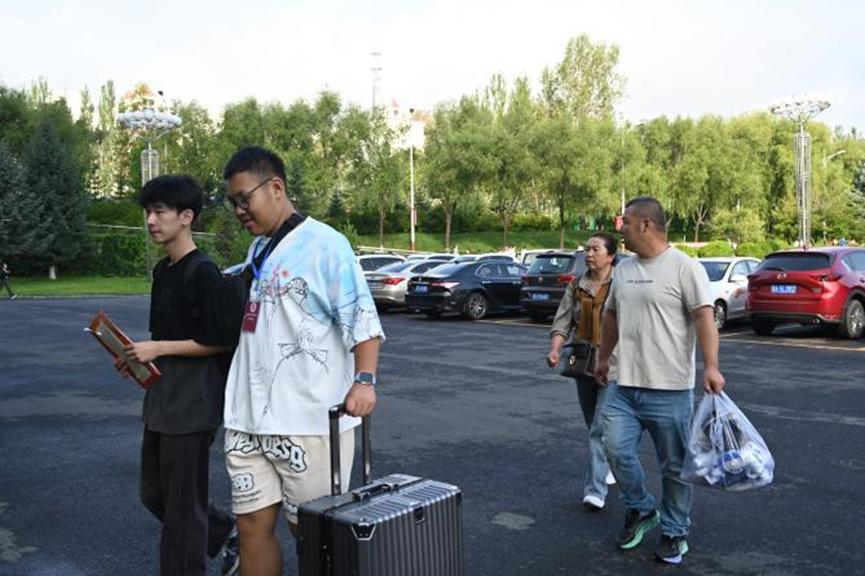 美好的一天从同学们踏入校园开始,在综合楼南广场上,新生们推着行李箱遵循着指示牌,与学长学姐们的指引来到了行李存放处,即将加入教科大家庭。行李帐篷下,学长学姐热情的去迎接新生的到来,帮助新生把行里安置在帐篷下,再指引新生去田径场报到处。