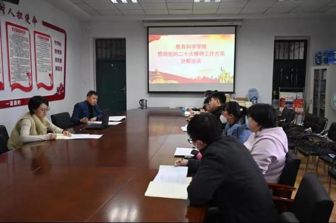 为全面准确学习领会党的二十大精神,切实用党的二十大精神统一我院的思想和行动。11月16日下午1:30,我院于文科楼222开展了“宣传贯彻党的二十大精神”工作方案分解会议。我院党委书记笙长军同志、党委副书记李想同志以及各基层党支部书记共同参加会议,本次会议由我院党委书记笙长军同志主持。