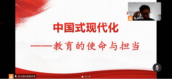 本次党课主题为“中国式现代化的教育使命与担当”,从”教育现代化是中国式现代化的关键组成部分”和“中国式教育现代化服务于中国式现代化”两个方面阐释了教育在中国式现代化进程中的基础性、先导性、全局性地位和作用,阐明了教育必须从全面建设社会主义现代化国家、全面推进中华民族伟大复兴的战略高度上担当好人才培养的主阵地、科技创新的主战场和国家建设的主力军的使命任务,阐述了以中国式教育现代化推动我国成为学习大国、人力资源强国和人才强国的路径,强调了中国式教育现代化必须为中国式现代化培根、筑基、育人。